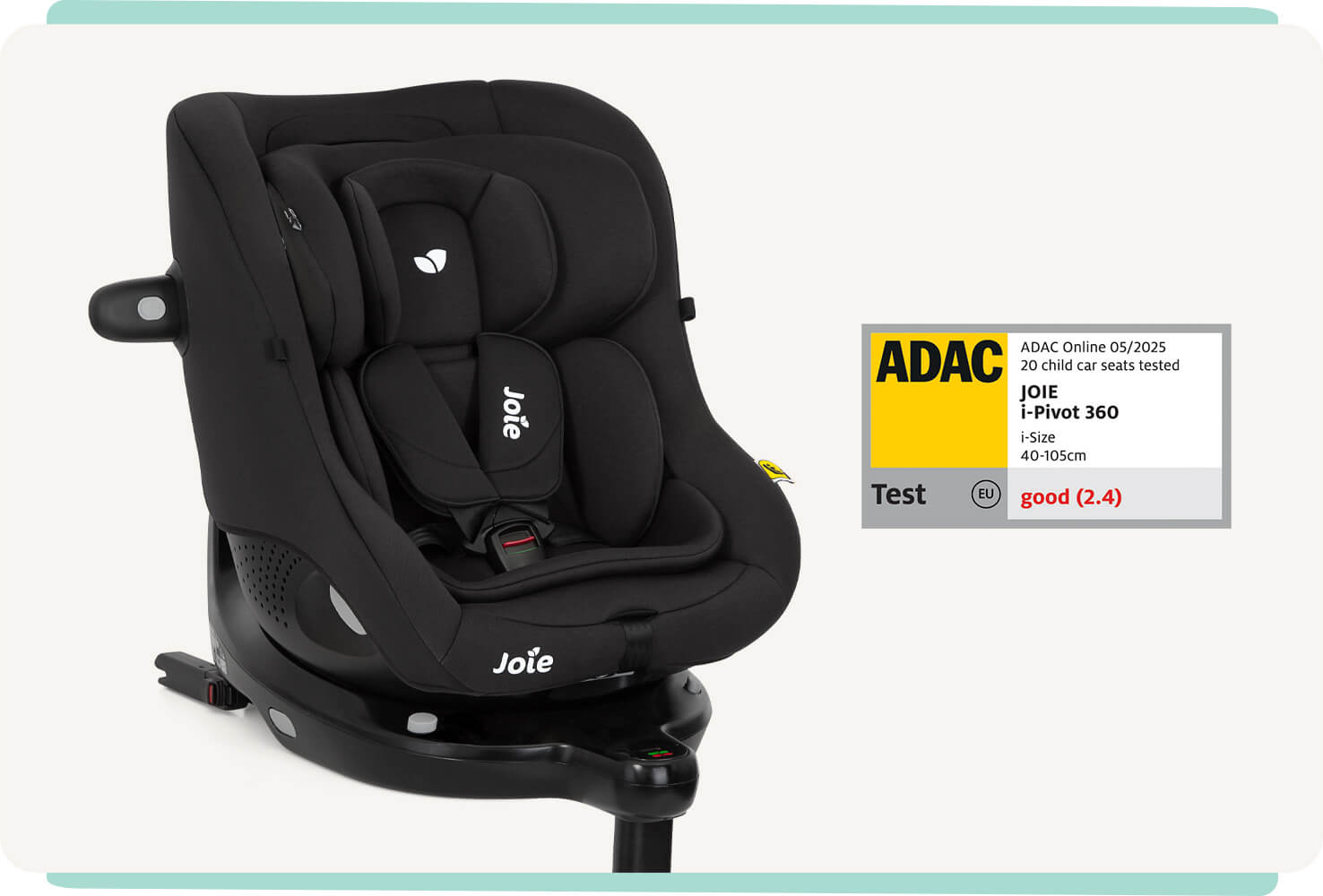 Joie i-Pivot™ 360 è il seggiolino auto i-Size con rotazione a 360°, protezione dagli impatti laterali e comfort regolabile, progettato per accompagnare il bambino dalla nascita fino a 105 cm.