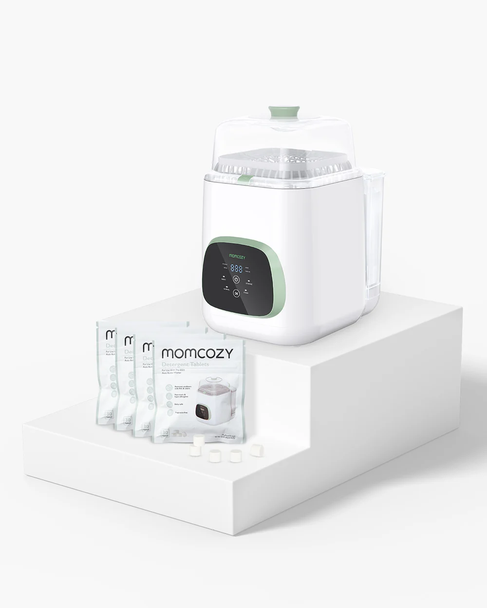Il set comprende 120 pastiglie detergenti Momcozy formulate specificamente per il dispositivo. Si tratta di pastiglie a bassa schiuma, facili da risciacquare, biodegradabili e sicure per i bambini. Ogni ciclo utilizza solo la quantità necessaria di detergente, garantendo un lavaggio efficace, ecologico e privo di residui. Una soluzione intelligente che unisce risparmio di tempo, rispetto per l’ambiente e cura per la salute del bambino.