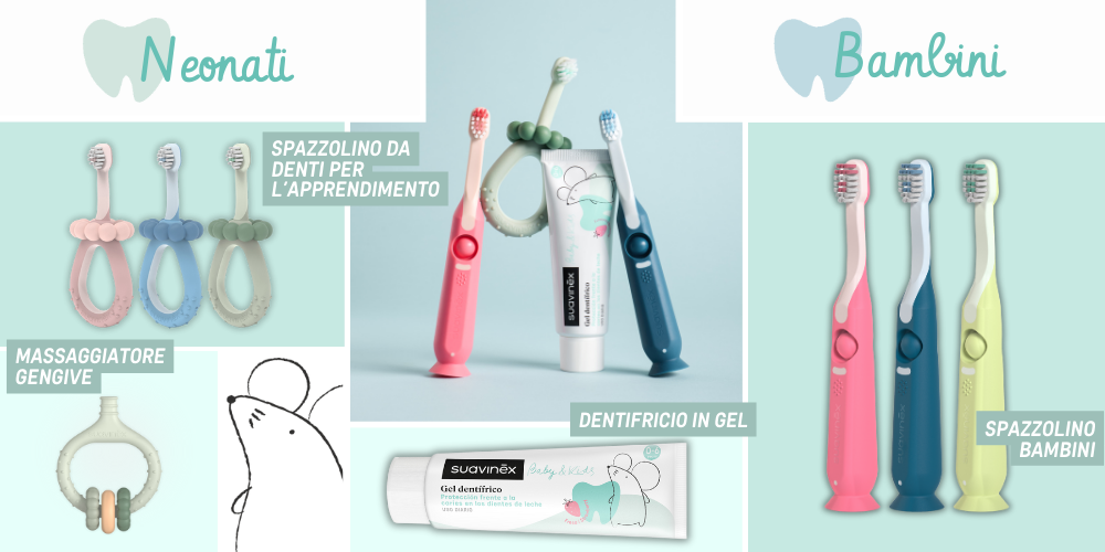 La nuova linea di igiene orale Suavinex nasce per accompagnare ogni fase della crescita, dall’eruzione dei primi dentini fino alla dentizione mista dell’età scolare. Una gamma completa e innovativa che unisce efficacia clinica e cura delle gengive, promuovendo fin dai primi mesi un approccio giocoso, sicuro e consapevole alla salute orale.